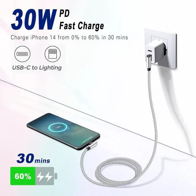 Right angle usb c to lightning cable: This right angle usb c to lightning cable features a 90 degrees design, which can protect device interface and extending service life. It's more convenient for playing games, watching video when you while charging.