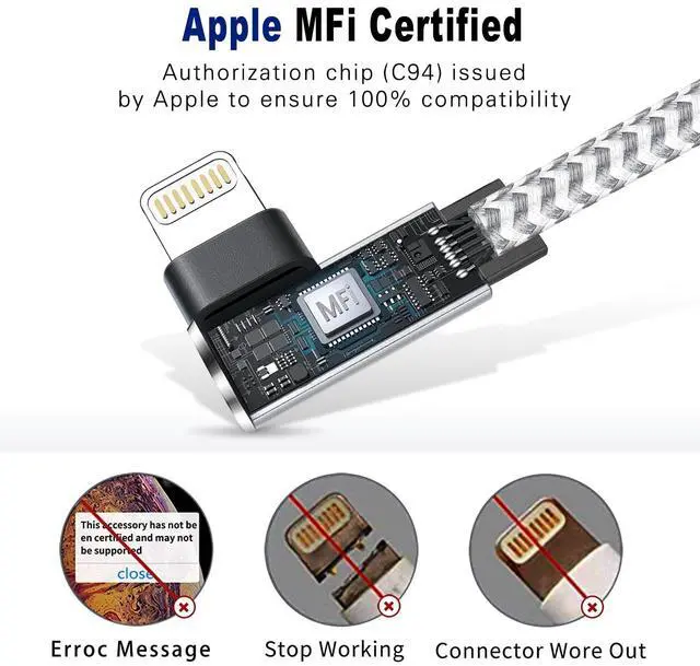 Apple MFi Certified: USB C to Lightning Charging Cable has completed MFi certification requirements. The Apple MFi certification and strict quality testing ensure the safety of your Apple devices even when fast charging at the highest speed.