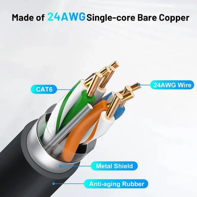 Excellent Material: The cable is made of high-quality rubber and 24AWG 100% pure copper material, long life, enough to meet your network connection needs.