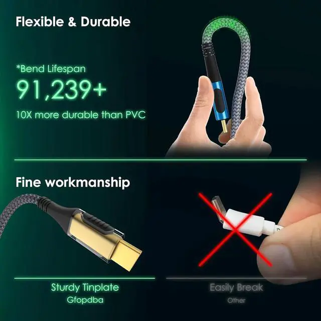 10x More Durable: This USB 4 Cable for braided Thunderbolt 4 cable is 10x more durable than regular USB C video cable. Quality braided jacket with 91,239+ bend lifespan. Built in quadruple shielded and tinplate can extremely resistant with EMI. Plugging and unplugging over 10,000+. 24k gold-plated can resist oxidation and improve connectivity. Using silver plated copper conductors to provide reliable assurance for video and data transmission.