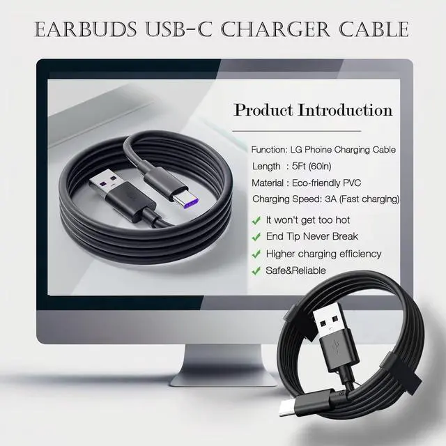 Superb DurabilityThe heat-resistant aluminium connector can withstand more than 10000 insertions and the tangle-free TYPE-C USB charging cable withstood 12000 bends in the test.