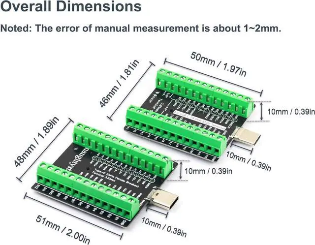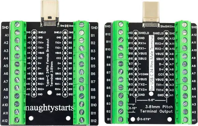 USB Type: USB Type C Terminal Breakout Board 24Pins Female Plug + Male Plug