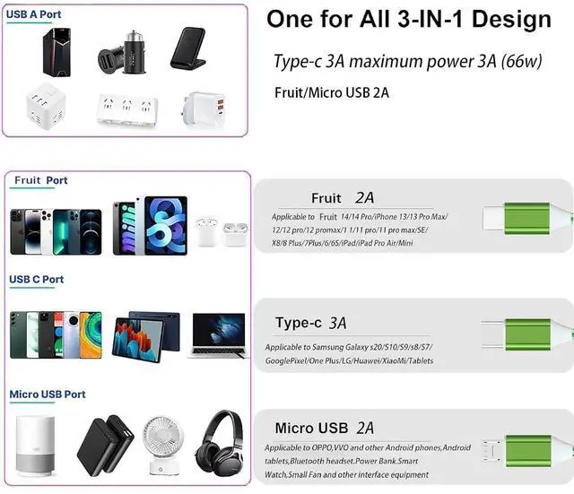 3 in 1 led charger compatibilityled charging cable with type c charger cable, android phone charger and luminous charger cable (Fruit series support 5-16pm)