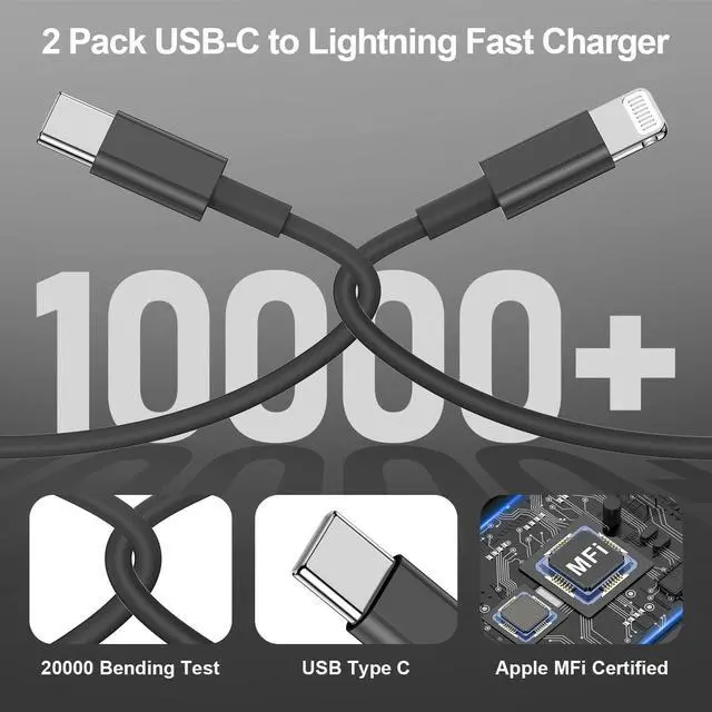 Safe & Durable iPhone Charger Cable6ft usb type c to lightning cable fast charger was tested withstand over 15000 bends,its design makes the quick cord more durable. Each end is plastic with a soft rubber neck that helps make them grip-able as well as durable.