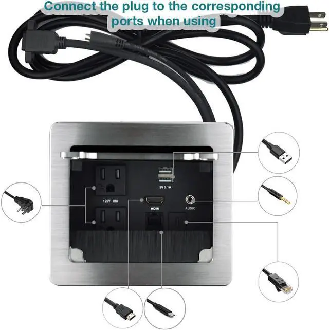 MaterialThis Metal malfunction desktop Socket is made of aluminium alloy,and the top panel is Silver Color and Brushed elegant finish