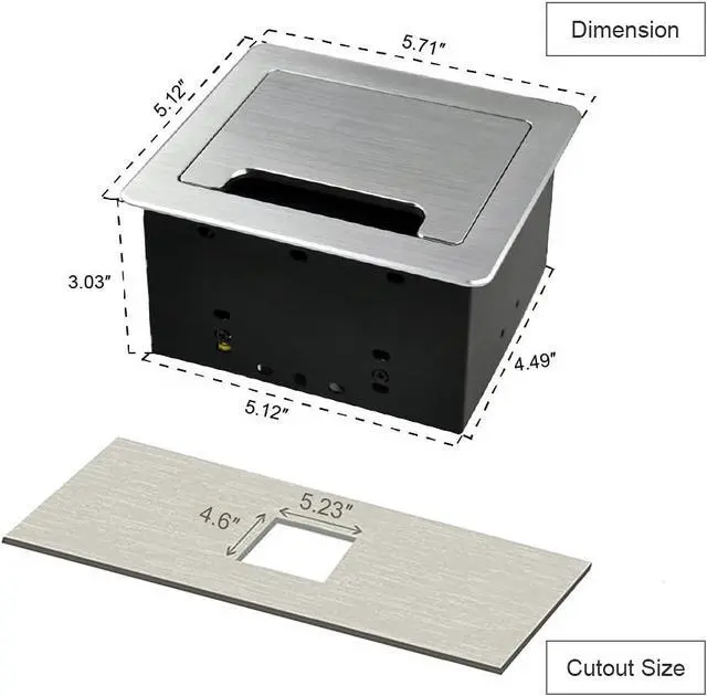 Panel size of multimedia power box: 5.71" x 5.12"(145 x 130mm), opening size: 5.23" x 4.6"( 133mm x117mm)