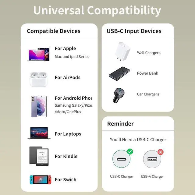 [2 in 1 Universal]This 2 in 1 magnetic charging cable comes with many kinds of of magnetic tips (Type-C ). It is suitable for charging USB-C devices and iPhone models. It is compatible with iphone 15 charger cord for iphone 16/15/14/13/12 Series, Samsung Galaxy S22/S21/S20 Series, Note 20/Note 10 Series, Google Pixel 3/4/5/6, Macbook Air 13'', iPad Pro 2018/2020/2021/2022, iPad Air 2022/ 2020, iPad 2021, iPad Mini and more USB-C devices and Widely used USB c cable.