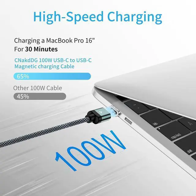 [PD 100W Fast Charge] The usb c to usb c magnetic charging cable upgrade PD 100W tech takes charging speed to the next level. Type-C output: 20V, 5A Max (100W) with the PD charger, IOS output: 9V, 3A Max (27W) with the PD charger, which ensured by high-speed safe charging, 3 x faster than the general USB-C cable. Support PD,QC3.0 fast charging protocol.480 Mbps data transfer speed.