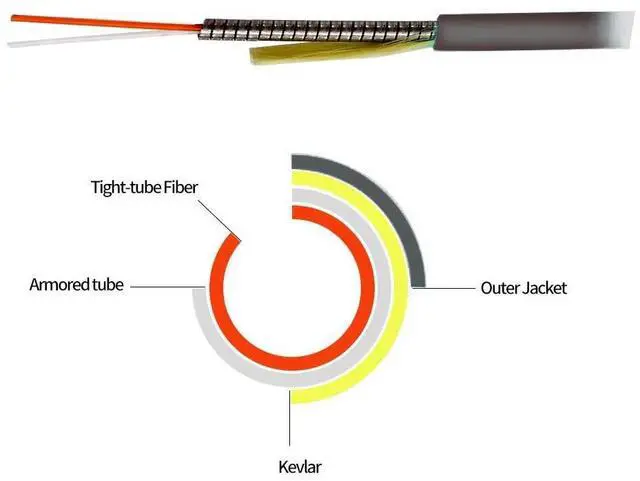 Great flexibility and duribility with a flexible stainless steel tube inside the outer jacket as the armor to protect the fiber glass inside.