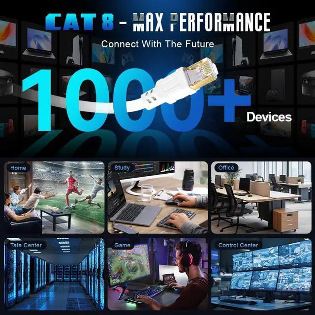 Wide Compatibility & Better Service - Cat8 patch cable is the best companion for switch, router, modem, Xbox, PS4, server, laptop, computer and more. Also compatible with Cat7, Cat6, Cat6a, Cat5, Cat5e. Free maintenance for 2 years.