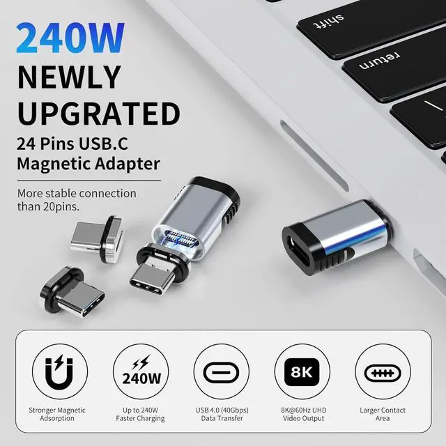 POWERFUL FAST CHARGING: This Magnetic USB C Adapter supports up to 240W fast charging, making it an essential accessory for high-power devices like MacBook Pro, Chromebook, or Dell XPS. It intelligently adapts its power output to suit your device's requirements, ensuring efficient and safe charging every time.