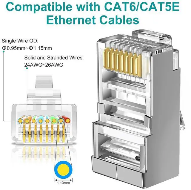 Compatibility: Works effectively with any type of pass through crimping tool and 24 to 26 AWG Solid or Stranded FTP/STP Ethernet Cable