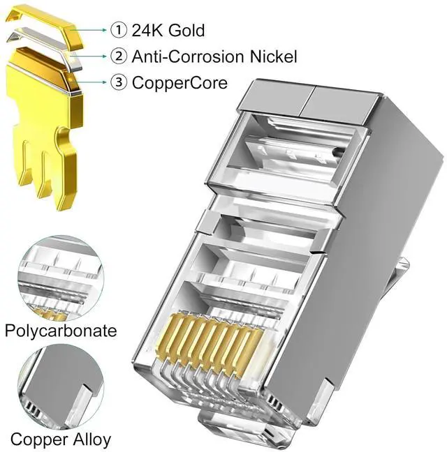 High Quality: The metal shield shell provides good shielding performance; carefully built FTP alloy shell; gold-plated contacts provide superior transmission for Cat 6/Cat 5e cable