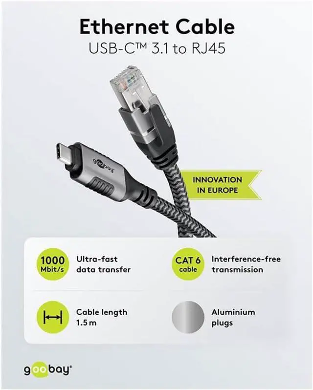 CAT6 cable is effectively protected from interference thanks to foil shielding (FTP). The braided textile sheath of the USB cable has a pleasant feel and is gentle on sensitive surfaces