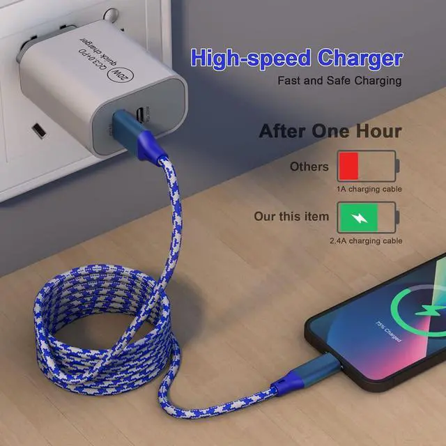 Compatibilty with Apple device: 20ft iphone charger cable compatible with iPhone 14/13/Pro/12/Pro/iPhone 11/Pro/iPhone XS/iPhone Max/iPhone XR/iPhone X/iPhone 8 Plus/iPhone 8/iPhone 7 Plus/iPhone 7/iPhone 6s Plus/iPhone 6s/iPhone 6 Plus/iPhone 6/iPhone 5s/iPhone 5c/iPhone 5/Pad Pro/Pad Air/Air 2/Pad mini/mini 2/mini 4/Pad 4th gen/Pod Touch 5th gen/ Pod(The iphone charger cable could be used after iOS system update)
