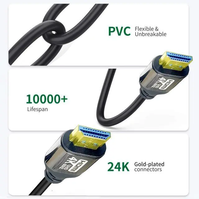 High-Speed Transfer Rate: 4K HDMI cable with ultra-fast data transfer rates of 14.4 Gbps for zero blur and minimal signal loss