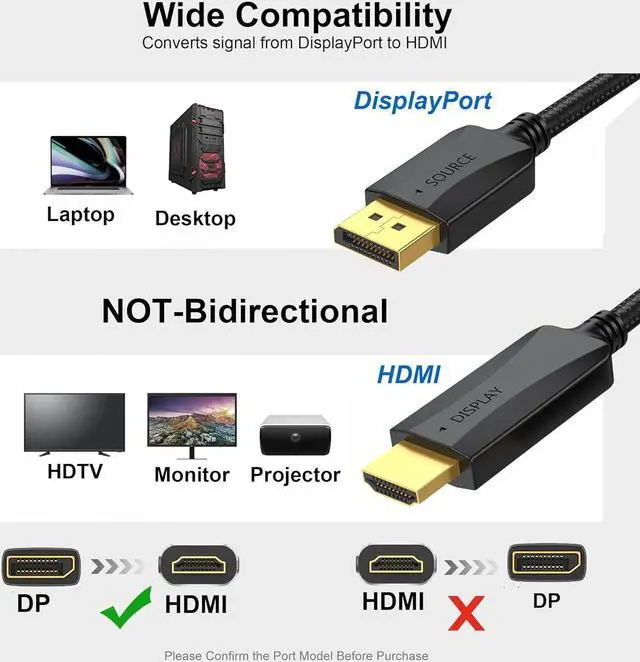 DP to HDMIConvenient cable directly connects a DisplayPort (DP, DP++, DisplayPort++) equipped computer to an HDTV, monitor, or projector with HDMI input