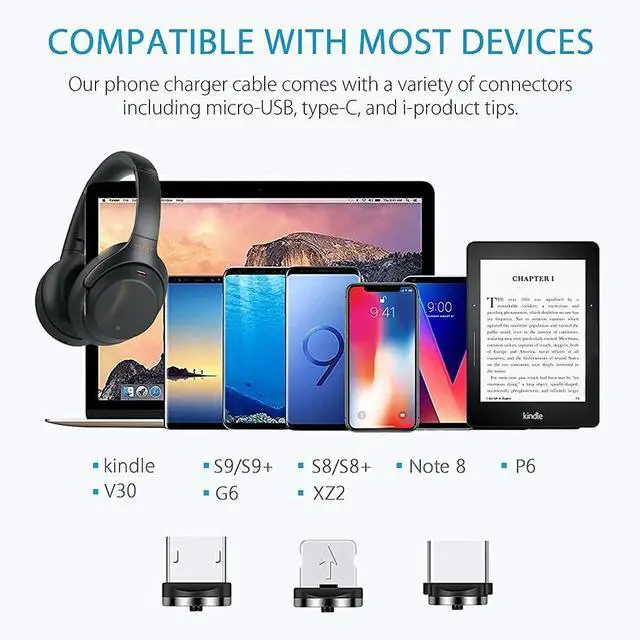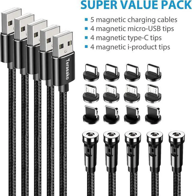SUPER VALUE PACK - Includes 5 magnetic charging cables, 4 magnetic micro-USB tips, 4 magnetic type-C tips, and 4 magnetic i-product tips. Every purchase is backed by our solid 12-month warranty.