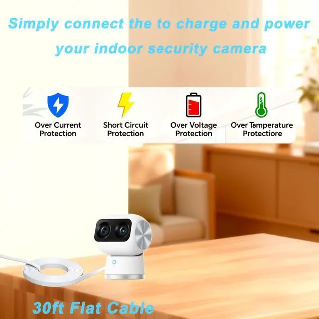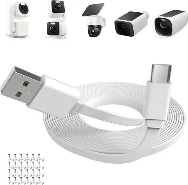 50FT Flat USB C Cable: The 50FT power cable length can ensure that your surveillance camera can be kept away from the power supply without degrading performance. Flat USB Type C cables can pass through small gaps in doors and windows without difficulty.