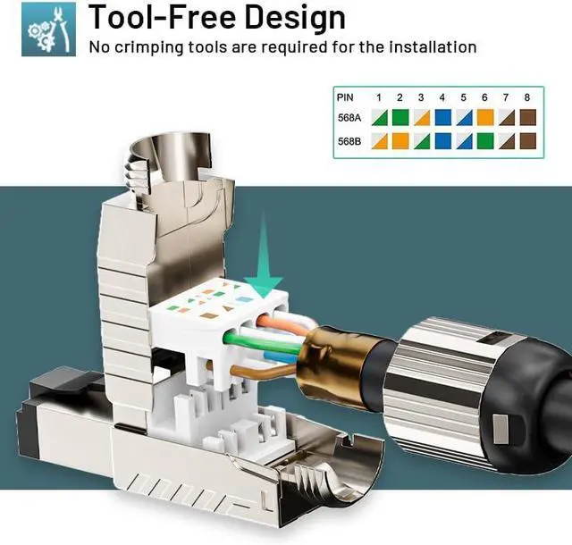 Easy to UseImpact tool free RJ45 connector with an open hinged design simplifies placement compared to a cramped modular plug; Nut-Type strain relief boot is convenient to install and disassemble.