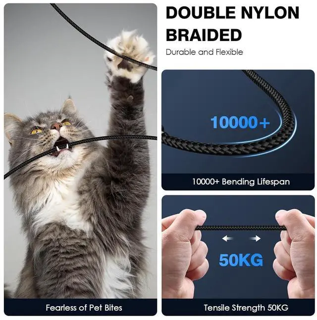 Unbreakable USB C Charging CordThe Opluz extra long iphone 16 charger cord is crafted from zinc alloy and high-quality nylon for exceptional durability and flexibility.100% unbreakable and pet-chew-proof