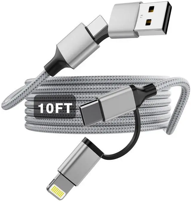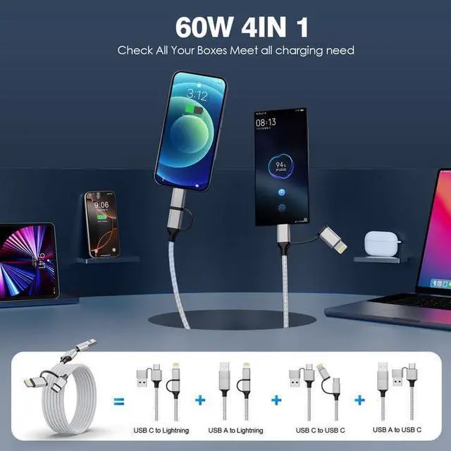 • 4-IN-1 Switch CableLightning and type c switch Multi usb c cable can fit any Lightning or USB C devices. extra long iphone 16 charger cord also Also desin with USB A and USB C dual-input ports; compatible with all chargers featuring USB-C or USB-A ports.