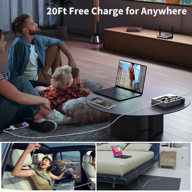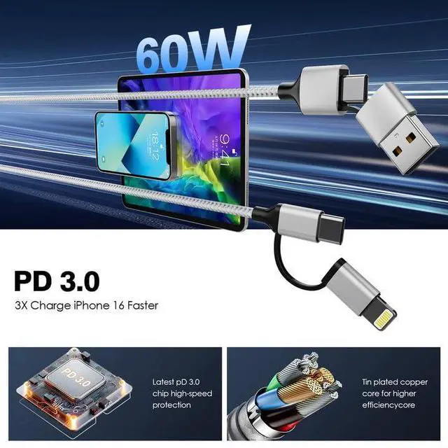 60W Multi Charger Cableextra long iphone 16 charger cord offers high-speed, safe fast charging up to real 60W, enabling 60W fast charging for iphone 16, Android smartphones, iPads, and MacBooks; One Calbe for all: Wide compatibkle with all Apple/Android devices.This Fast charging cable saves time and enhances efficiency.