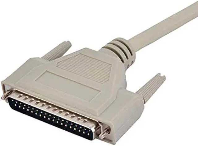 The connectors are molded onto the cable and feature thumbscrews for securing the plug to the socket