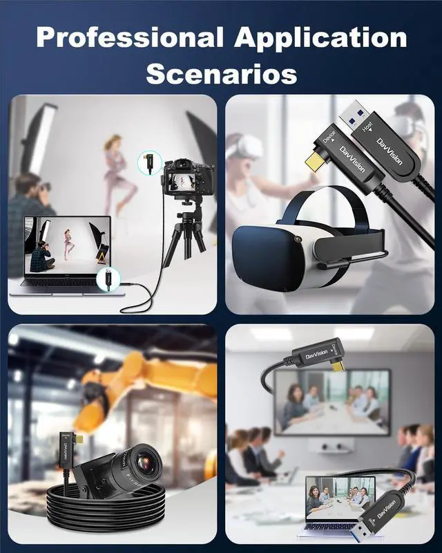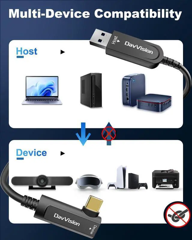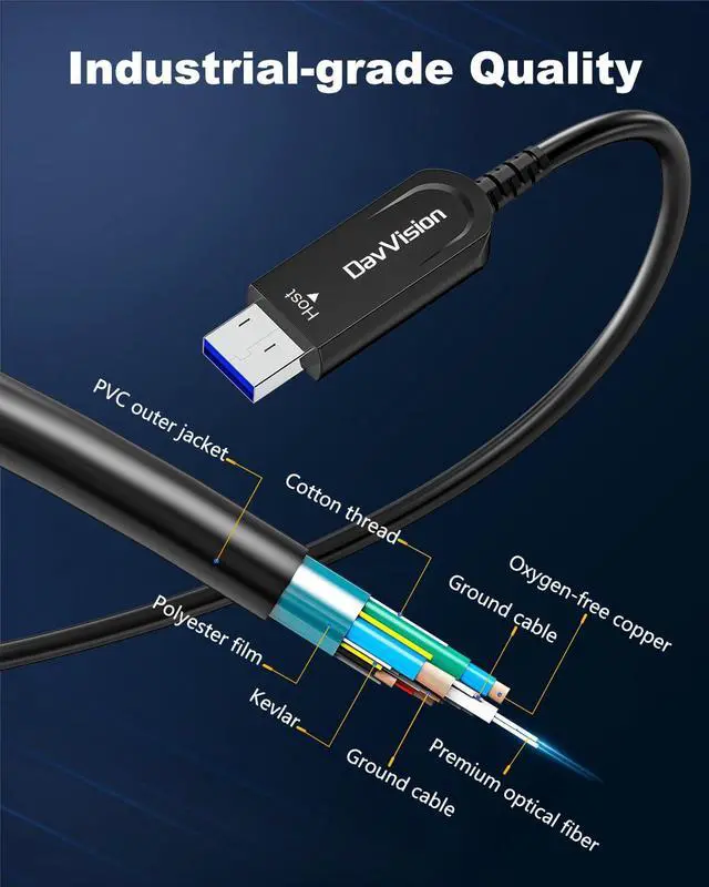 10Gbps High Speed Data Transfer: DavVision USB fiber optic cable built-in optical conversion chip for 10Gbps data transfer via optical signals, ensuring zero latency,zero data loss & electromagnetic interference.Backward Compatible with USB 3.0 & 2.0.
