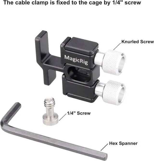 Easy to InstallThe cable clamp attaches to the left side of the cage using 1/4" screw. And allen key included in the package to tighten the screw.