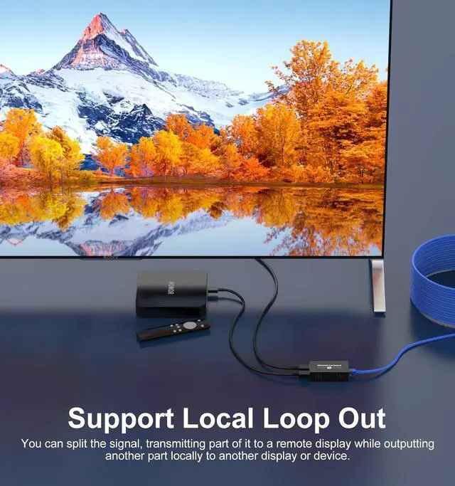 Supports Local Loop Out Convenient local loop out function allows you to connect both local and remote monitors at the same time, which is convenient for you to monitor, demonstrate or multi-screen display operations. No additional setup required, plug and play.
