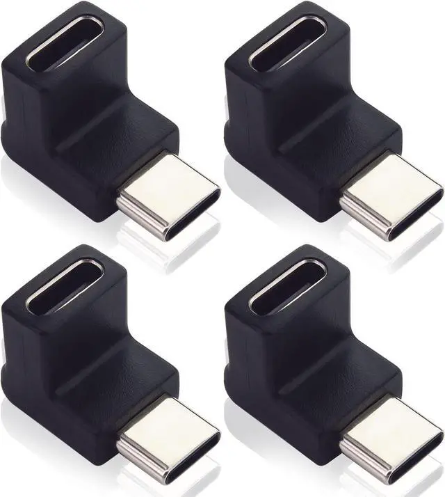 USB Type C ConnectorThis is a 90 degree elbow right angle Type-C male to Type-C female adapter, which means that both ends are Type-C plugs.(4 Pack)This 90 degree design right angle USB C adapter can help you solve difficult connection problems in tight places. The Right-Angle USB C Adapter can be tilted left or right, up or down, giving you more flexibility in your setup.