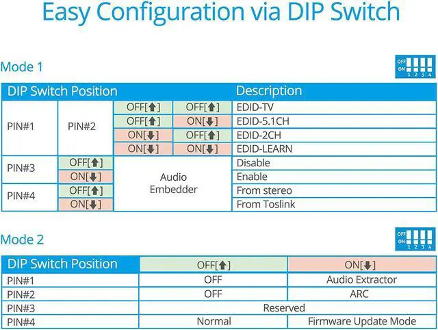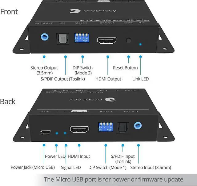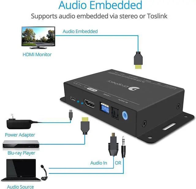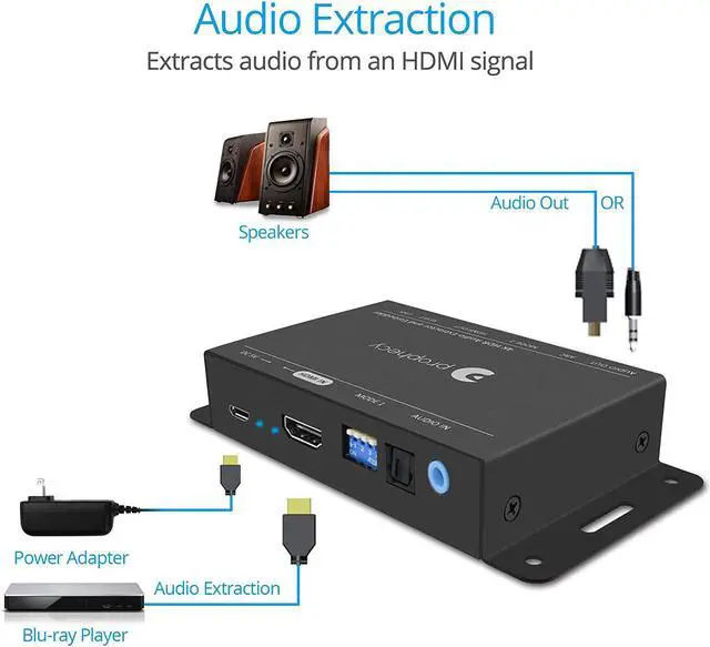 ADVANCED FEATURES Supports CEC bypass & ARC audio extraction via Toslink; firmware upgradable for increased compatibility over time