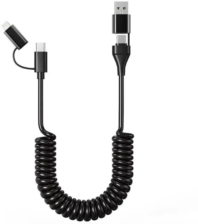 Durability & High Quality 1× USB A / USB C to USB C / Lightning Coiled Charging Cable. 2 IN 2 USB C and Lightning cable is engineered with PVC exterior which is smooth yet grippy. It also increases the durability and flexibility of charging, and the cable will not get tangled and knotted.