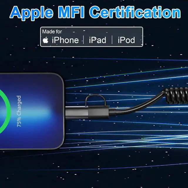 Universal CompatibilityApple carplay cord is MFi certified compatible with all USB C and iOS devices. Compatible with iPhone 15/ 15 Pro/ 15 Pro Max, iPhone 14/ 13/12/11/X/ XR/ XS/ XS Max/ 8/ 7/ 6, Samsung Galaxy, HTC, LG, Sony Xperia, Android phones, iPad, iPod, Tablet, Laptop, Macbook