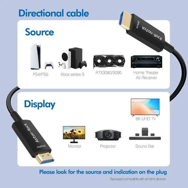 8K fiber HDMI 2.1 Cables with The latest Active Chipped,support the all HDMI devices like PC,TV models,Game consoles,No signal loss.Backward compatible with earlier versions of HDMI.