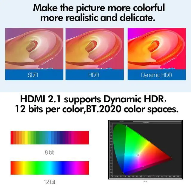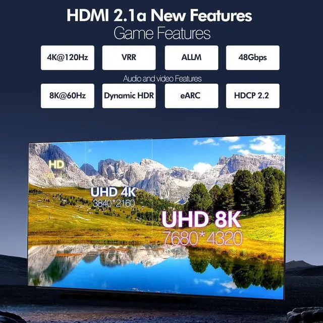 8K hdmi cable with 48Gbps bandwidth for latest features Dynamic HDR,DTS-HD,HDCP 2.2 and 2.3,Dolby Vision,IMAX ENHANCED,Dolby Atmos, eARC,3D video display etc