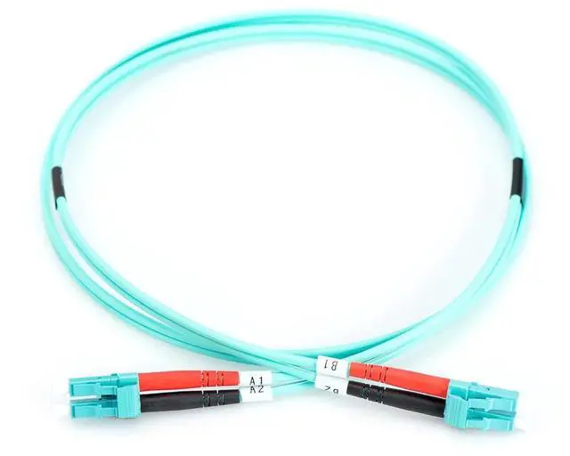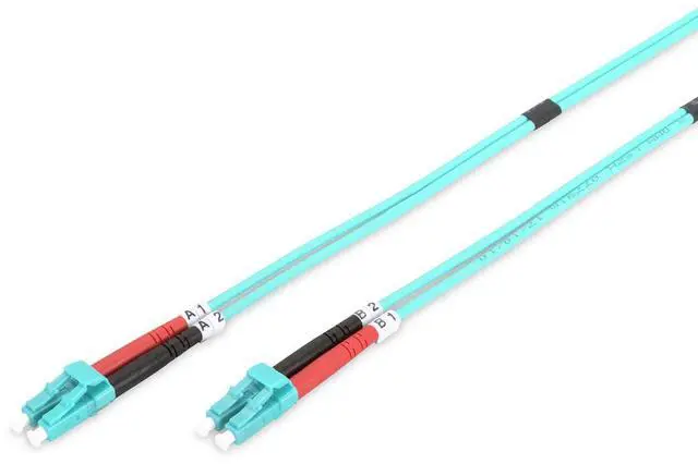 Bifiber optical data links of the OM3 category achieve bandwidths of up to 10 Gigabits per second if the total line length does not exceed 100 meters.