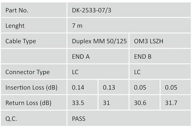 Each patch cable contains a fiber for the forward and backward channel as well as plugs with ceramic ferrule and two-color anti-kink sleeves for unambiguous fiber identification.