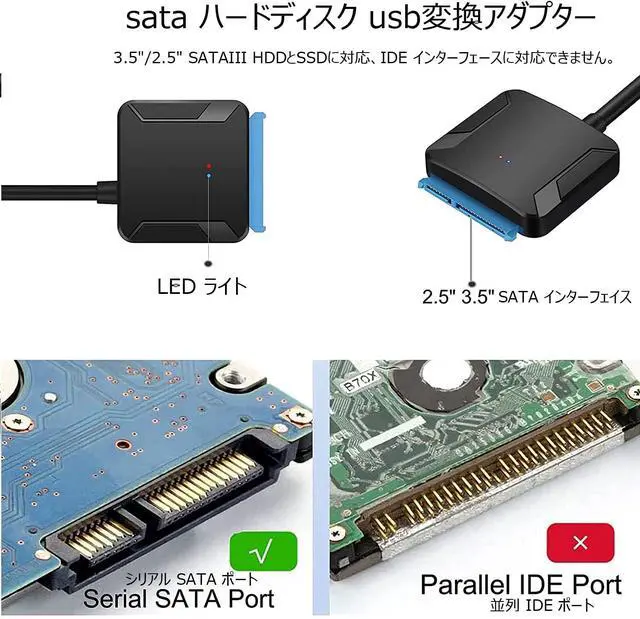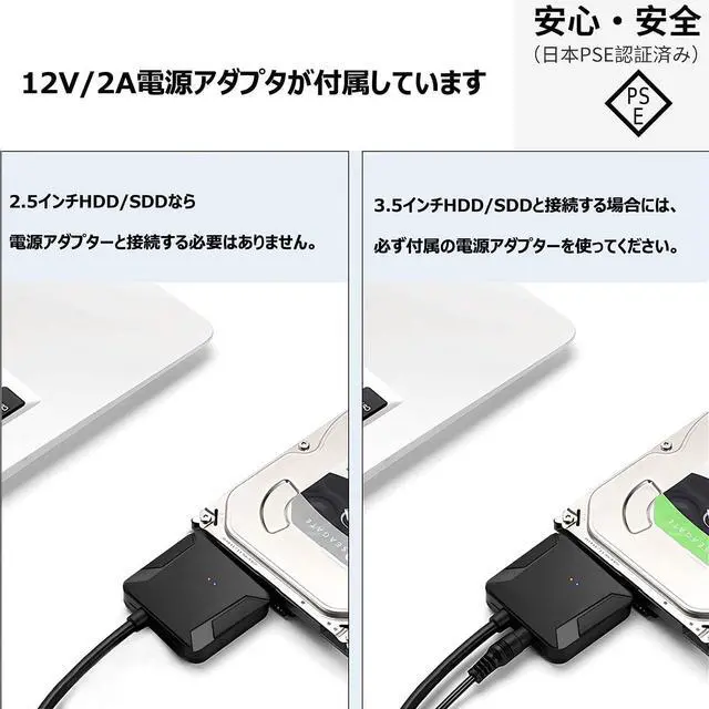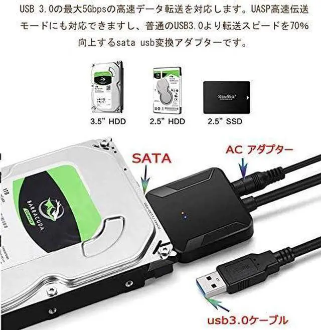 SATA USB Converter CableConnect 3.5" SATA HDD and 2.5" SATA HDD SSD drives to your computer with USB 3.0 for data access and backup. Note: When connecting a high power consumption device (3.5 inch hard drive), please use the included power adapter