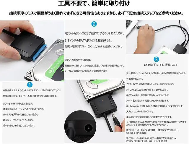 Easy to install with no tools required: It can be easily connected to an HDTV, laptop, PC, etc. via an HDD USB conversion cable, and it can be recognized by simply plugging it in without a screwdriver. Portable and easy to use