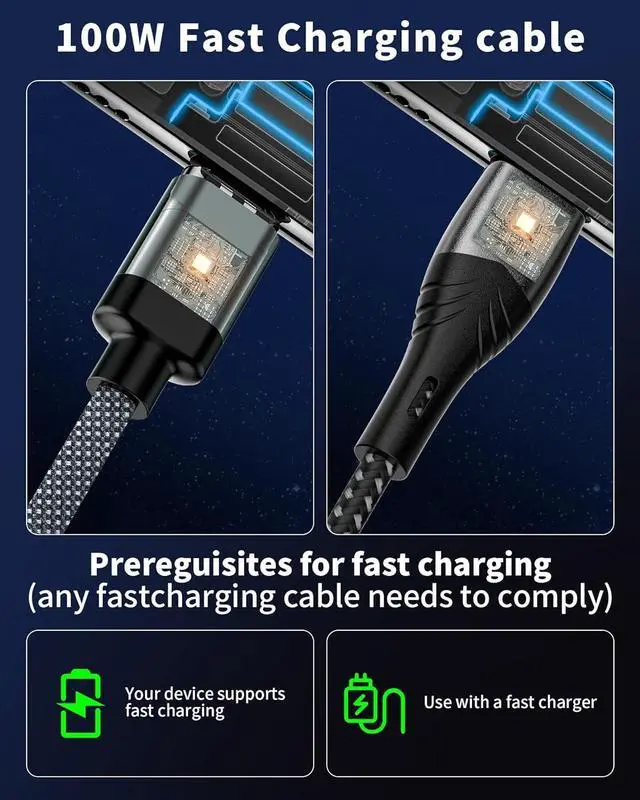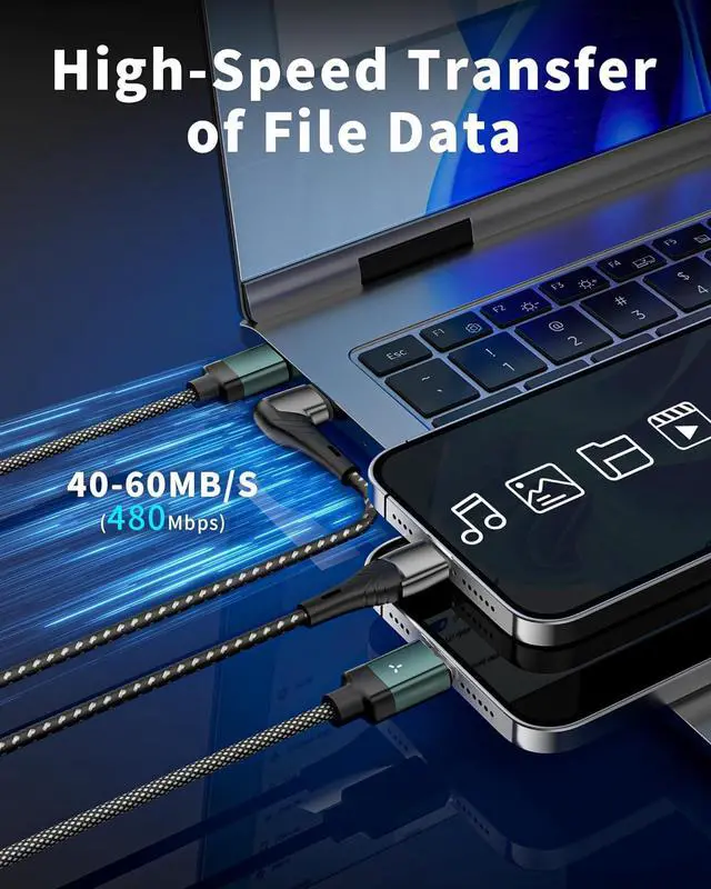 PD 100W Fast Charge:The magnetic charging cable upgrade PD 100W tech takes charging speed to the next level. Type-C output: 20V, 5A Max (100W,Up to 240W) with the PD charger, IOS output: 9V, 3A Max (27W) with the PD charger, which ensured by high-speed safe charging, 3 x faster than the general USB-C cable. Support PD,QC3.0 fast charging protocol.480 Mbps data transfer speed