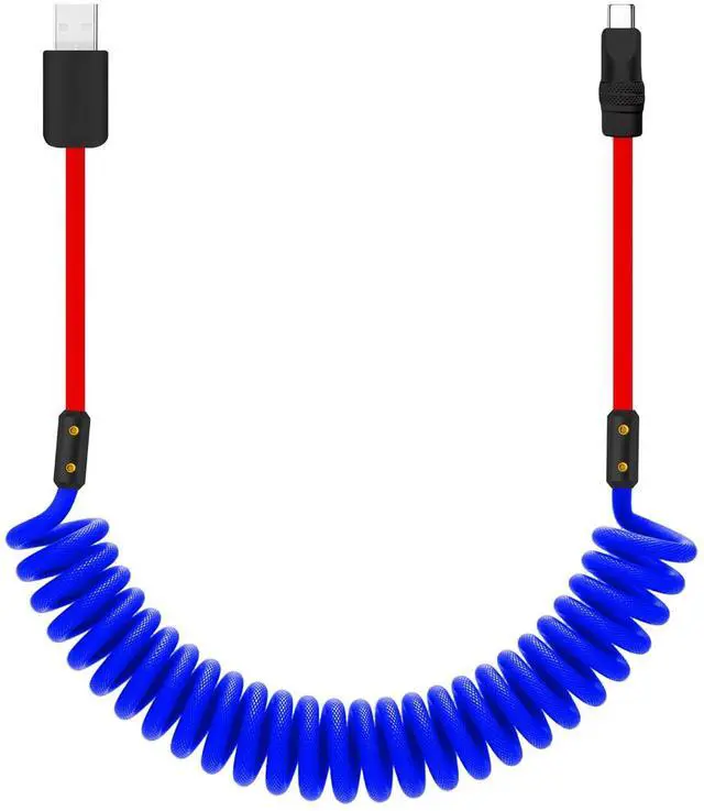 chubbycable Curly Chubby - 240W Coiled USB C Cable Spring Retractable Fast Charging Cable for Car Compatible with CarPlay, Android Auto, Blue+Red, USB-A to Type-C, 2.29FT-3.6FT