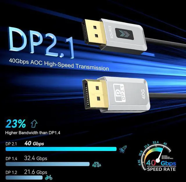 Wide CompatibilityOur display port 2.1 AOC can be used on all devices with DisplayPort interfaces. Plug and play, backward compatible with DisplayPort 2.0/1.4/1.3/1.2/1.2A/1.1/1.0. It also works seamlessly with popular gaming graphics cards like RTX 5090/5080/5070Ti/5070/4090/4080/4070Ti/3090/3080 Ti/3070, AMD 7900XTX/7900 XT, and more. Connect to HDTVs, monitors, displays, and gaming graphics cards with DisplayPort for crystal-clear audio and HD video.
