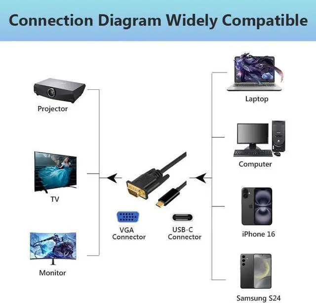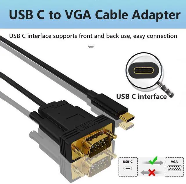 USB-C to VGA Adapter Transfer Stable Video: Our VGA to USB C adapter cable can displaying sports events, movies, gaming, photos directly from your devices on a large screen, no more worry about bad WiFi or slow network problem. Note: The USB-C port of your device needs to support video output function