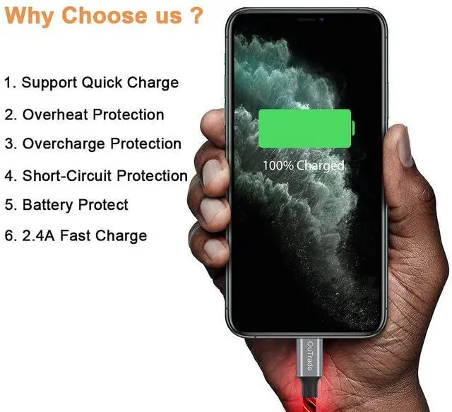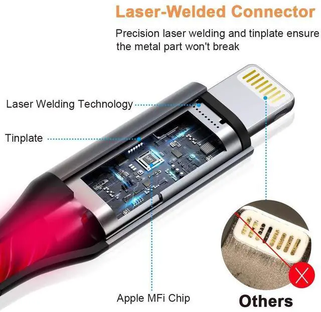 MFi & 2.4A Fast ChargingMFi certification and strict quality testing ensure your Apple devices are charged safely, at their fastest possible speed, connector with a lightning end, you can enjoy high speed data transfer speed up to 480Mb/s