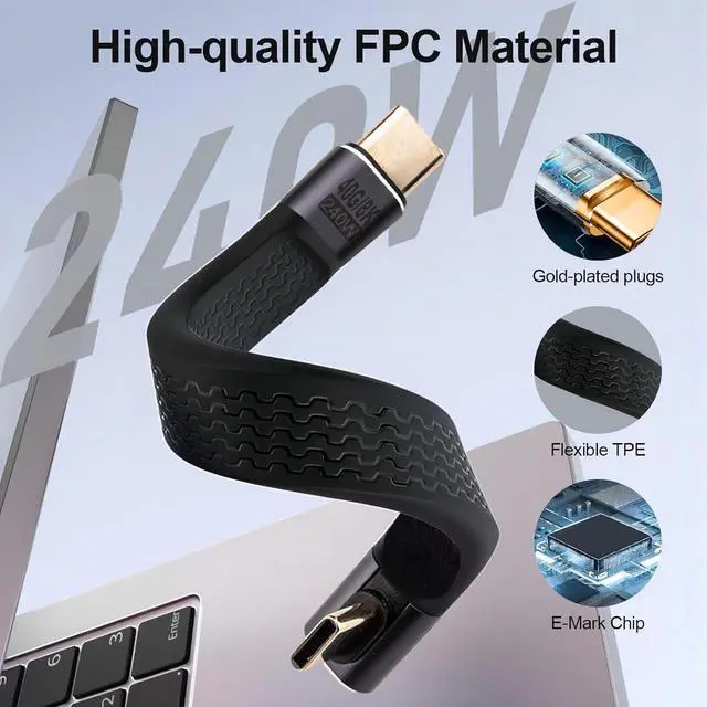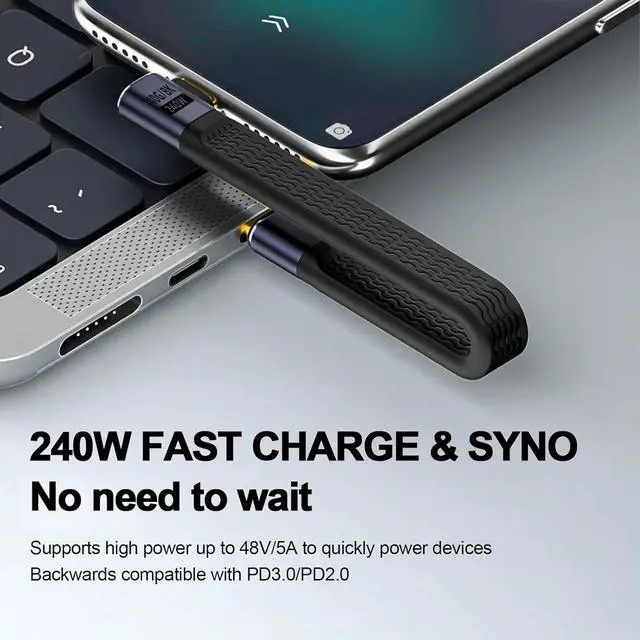 Amazing Lightning SpeedThe short usb c cable 90 degree supports ultra-high transfer rates of up to 40Gbps, transferring 1G files in just a few seconds without waiting. The usb c 90 degree cable utilizes the world's fastest charging technology to date, charging your phone over 65% in 35 minutes, and the new EMARK2.0 chip ensures low temperatures to prevent damage to your device.
