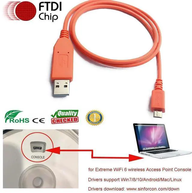 Connector TypeUSB to Micro USB Console Cable. Built-in FTDI Chip. Length:80cm.