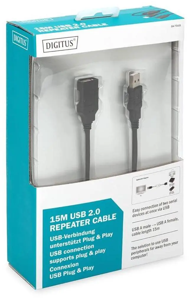 Active USB Extension Cable Expands the max. USB cable length permitted by additional 15m Compatible with USB specification revision 2.0 and 1.1 Also usable with USB 2.0 devices featuring their own power supplies Supports Windows 7, Vista, XP, Mac OS X