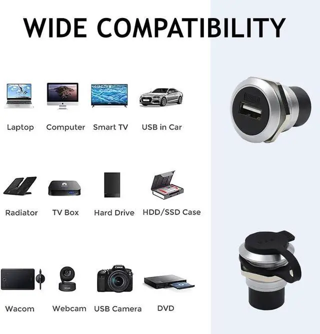 EASY INSTALLATIONStandard USB 2.0 Connector for Panel Mount Installations, USB female to female field installable coupler, no soldering, no installation tools. Adapt to a variety of harsh environments, acid, alkali, oxidation and so on. Guarantee the stability of the current.